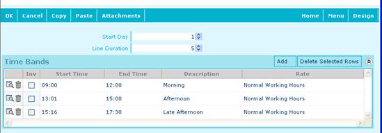 Click on Add within the Time Bands grid to enter the times of this shift line.